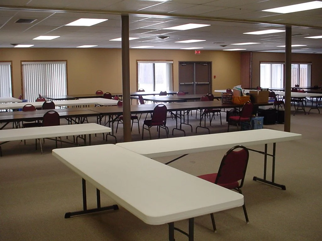 The West Dining Hall feels like a traditional summer camp space with the comforts of climate control and suitable AV capabilities. It is a large 50X50 space with easy access to bathrooms and plenty of round or rectangle tables and stacking chairs. During the summer, campers eat meals in this space.